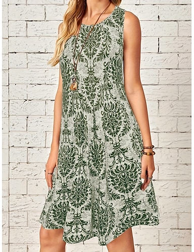 Femmes Robe Midi Robe Décontractée Robe d'Été Robe fourreau ancien Quotidien Extérieur Vacances Coupe Ample Fleuri Sans manches Col ras du cou Bleu Vert Été Printemps