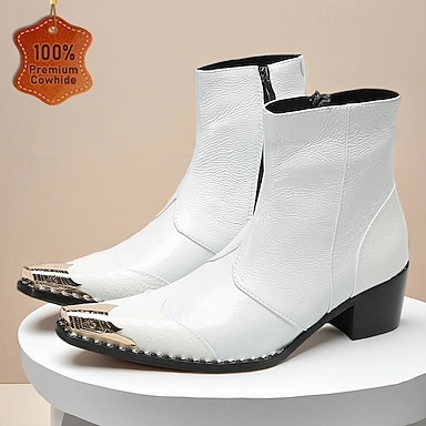 Bottines blanches en cuir pour homme - design élégant avec fermeture éclair, élégantes et polyvalentes pour les occasions formelles et semi-formelles
