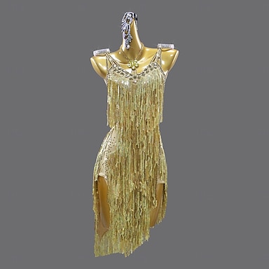 Robe de danse latine à strass, pompons et paillettes, sans manches, pour femme, idéale pour les fêtes, la salsa et la rumba.