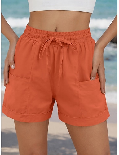 Femmes Faux coton lin Shorts Shorts d'été Vacances Mode Streetwear Court Taille haute Uni Cordon de serrage Avec Poches Taille Élastique Respirabilité Confortable Non Elastique Quotidien Vacances Rue