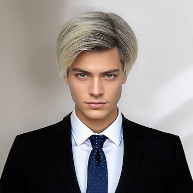 Perruque courte blonde mélangée à des bruns pour homme, cheveux synthétiques raides et dégradés, perruque de cosplay, perruque de soirée quotidienne