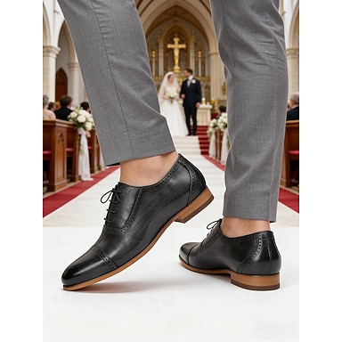 Chaussures Oxford respirantes en cuir véritable noir pour homme – Chaussures habillées légères à lacets pour le bureau, les mariages et les tenues formelles d'été