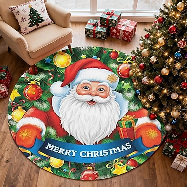 Tapis rond père Noël pour salon et chambre faux cachemire tapis de vacances Noël doux antidérapant lavable en machine tapis décoratif festif 4 pi
