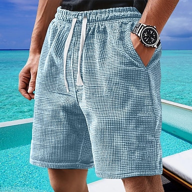 Homme Short gaufré Shorts d'été Shorts de plage Short décontracté Cordon de serrage Taille Élastique Couleur Unie Confort Longueur Genou Quotidien Extérieur Vêtements de rue Vacances Mode Bleu Blanche