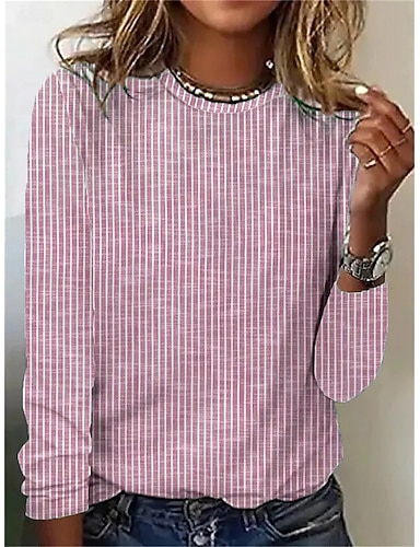 Femmes T-shirt Imprimé Graphique Géométrique Rayé ancien Élégant Classique manche longue Col ras du cou Col rond Hauts Réguliers Quotidien Bleu Rose Claire Vert Printemps Automne Hiver