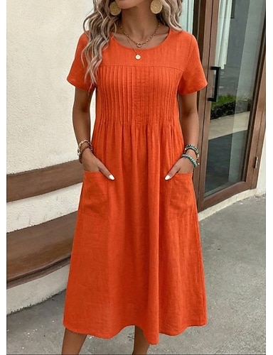 Femmes Robe Midi Faux coton lin Robe fourreau Robe T-Shirt Mode Moderne Quotidien Extérieur Fête Coupe Ample Uni Manche Courte Col ras du cou Vert Véronèse Rouge bleu marine Été Printemps