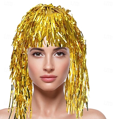 Perruque de carnaval 2026 Jaune Bouclé Mi-long Perruque synthétique de festival Mardi Gras Parade Coiffure de costume de cosplay pour Femmes