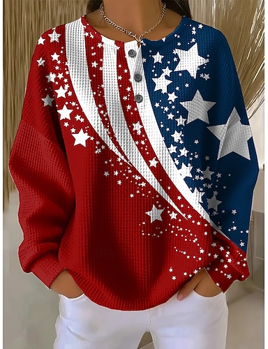 Pull en sweat texturé patriotique pour femmes pour le jour de l'Indépendance graphique lettres décontracté à manches longues col rond haut régulier style casual maison rue blanc printemps automne