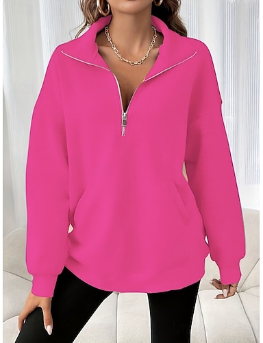 Femmes Sweatshirt Pull Patchwork Fermeture éclair Uni Occasionnel manche longue Col roulé Hauts Réguliers Rue Tenue Quotidienne Noir Fuchsia Gris foncé Beige Gris Automne Hiver