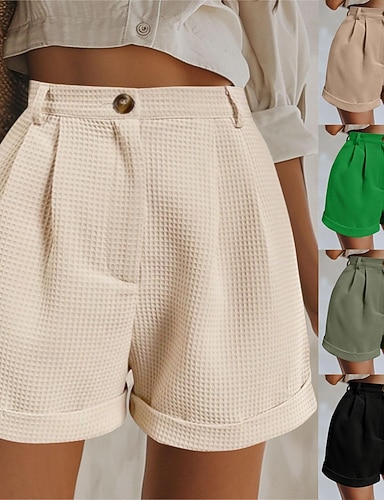 Femmes Short gaufré Shorts Shorts d'été Short décontracté Vacances Mode Streetwear Court Taille haute Uni Avec Poches Taille Élastique Confort Doux Confortable Micro-Élastique Extérieur Rue Fête Noir