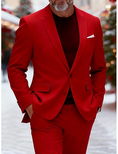 Homme Blazer + pantalon habillé Blazer de Noël Costumes Noël Affaires Cocktail Mode Occasionnel Printemps Automne Polyester Uni Avec Poches Boutons Confortable Simple Boutonnage veste Noir Rose