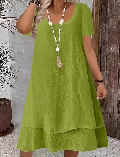 Femmes Robe Midi Robe d'Été Robe trapèze Robe d'été Vacances Occasionnel Boho Quotidien Fête Sortir Coupe Ample Uni Demi Manches Col ras du cou Bleu Noir Gris foncé Rouge Été