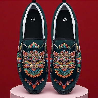 Chaussures à enfiler pour hommes de Mardi Gras avec imprimé mandala de chat – Design amusant et coloré pour le carnaval les parades et les célébrations artistiques
