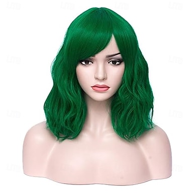 Perruque de carnaval 2026 Vert Bouclé Court Perruque synthétique de festival Mardi Gras Parade Coiffure de costume de cosplay pour Femmes