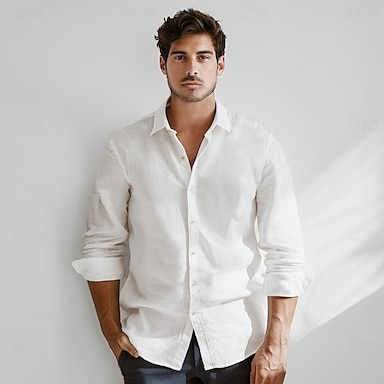 Homme Chemise Chemise en lin Couleur Unie Rue Quotidien Bleu manche longue Col rabattu Printemps & Été Vêtement Tenue