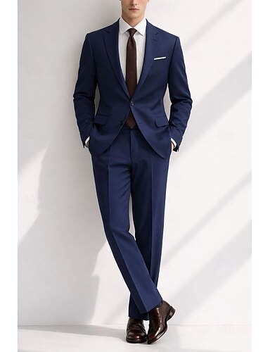 Pour des hommes Smoking Costumes d'affaires Occasionnel Mariage Vert foncé Bleu de minuit Printemps Costume / Tailleur Revers Cranté Quotidien Formel Couleur Unie Coupe Slim 2 pièces Simple