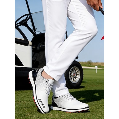 Chaussures de golf blanches pour homme, confortables et respirantes, design élégant, parfaites pour le golf ou les activités sur le thème du golf.