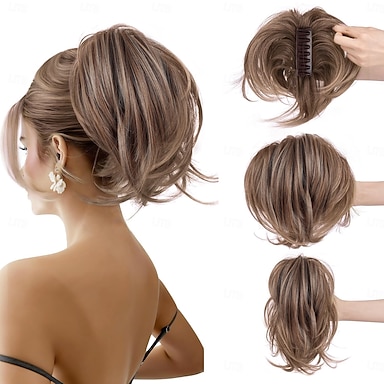 Chignon décoiffé à pince pour femme, extension de chignon en cheveux synthétiques ondulés et bouclés pour coiffures relevées, accessoires pour cheveux courts (blond foncé)
