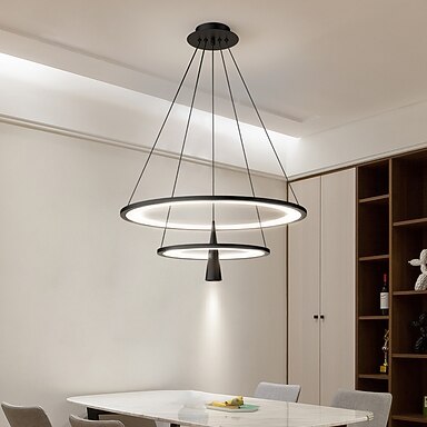 suspension led 30 + 50cm 2 lumières anneau cercle design aluminium finitions peintes luxueux style moderne salle à manger chambre lampes suspendues 110-240v uniquement dimmable avec télécommande