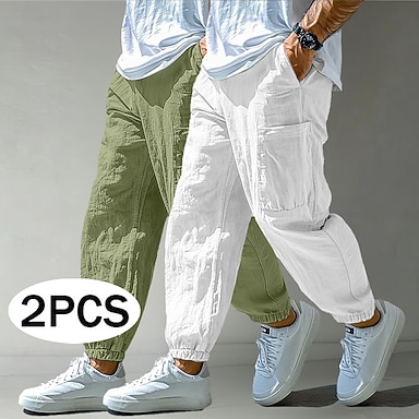 Homme Pantalons Cargo Pantalons en Lin Pantalons Dress Pants works Pantalons Fuselés Plis Poche cargo Uni Confort Respirant Longueur cheville Occasionnel Quotidien Affaires Vacances Mode Bleu Noir