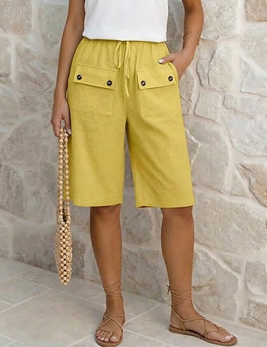 Femmes Pantalon capri Faux coton lin Shorts Shorts d'été Décontracté Quotidien Court Uni Poches Latérales Respirabilité Confortable Non Elastique Sortir Week-end Noir Blanche Jaune Vert Été Coupe