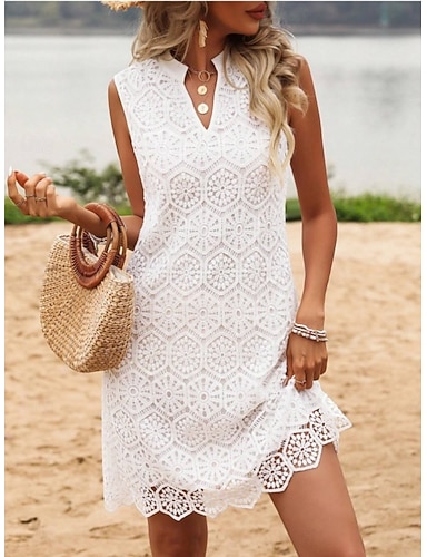 Femmes Mini Robe Robe trapèze Robe d'été Occasionnel Quotidien Coupe Ample Uni Sans manches Col en V Blanche Été