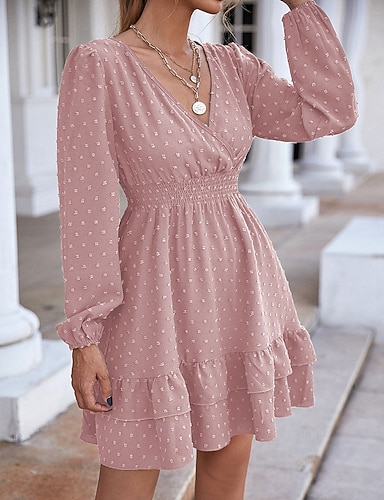 Femmes Mini Robe Robe Décontractée Élégant Mode Moderne Quotidien Vacances Sortir Coupe régulière Graphique manche longue Col en V Noir Blanche Rose Claire Vert Été Printemps Automne