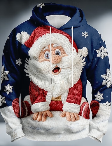 Noël Homme Père Noël Sweat à capuche Sweatshirt Mode Quotidien Occasionnel 3D manche longue Col ras du cou À capuche Maison Soirée Cadeau Bleu Bleu Ciel Rouge Vert Cordon de serrage Automne Hiver