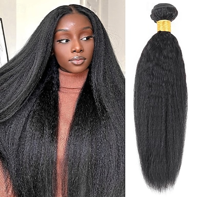 Cheveux humains brésiliens 1b # couleur noir naturel, crépus et lisses, 1 paquet de 25 à 75 cm