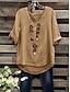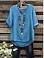 Femmes Chemisier Chemise en faux lin Boutons Asymétrique Couleur Unie Élégant Occasionnel Manche 3/4 Col ras du cou Hauts Longs Quotidien Gris Été Printemps Automne