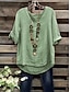 Femmes Chemisier Chemise en faux lin Couleur Unie Élégant Occasionnel Demi Manches Col ras du cou Hauts Réguliers Quotidien Bleu Vert Claire Rose Claire Vert Kaki Été Printemps
