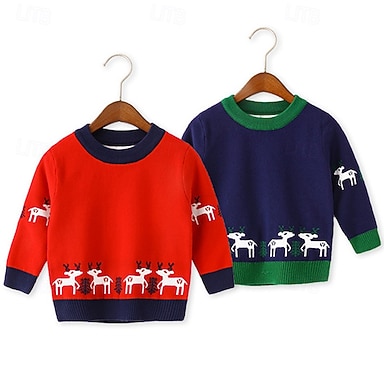 Pull de Noël Chandail Un sweatshirt pullover Enfants Unisexe Noël Cerf manche longue Col rond Cadeaux de Noël Mode Quotidien Rouge bleu marine Automne Hiver Vêtements 4 ans et +