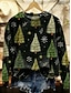 Pull en molleton pour femmes de Noël Arbre Graphique Mode Décontractée Manches longues Col rond Tops réguliers Mode de rue Quotidien Imprimé de vacances Noir Rouge Automne Hiver