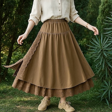 Médiéval Renaissance Jupe Jupe longue Pirate Couleur Unie Déguisement Femmes Fantaisie Halloween Carnaval Mascarade Performance Foire de la Renaissance Adulte Jupe Toutes saisons