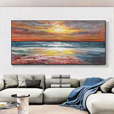 Peinture à l'huile faite à la main sur toile, décoration murale moderne abstraite, paysage de mer, lever du soleil, pour salon, décoration de maison, peinture roulée sans cadre, non étirée