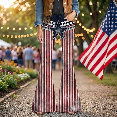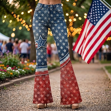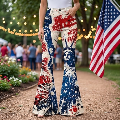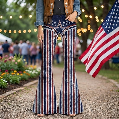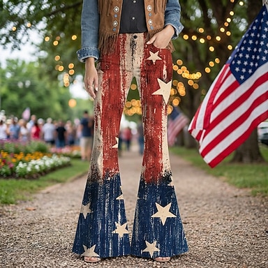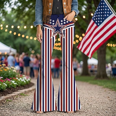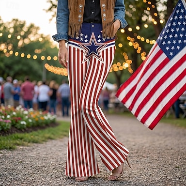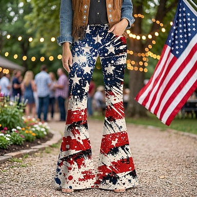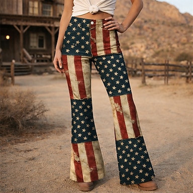 250e anniversaire des États-Unis Rétro Vintage Années 1970 Pantalon Pantalons à pattes d'éléphant Hippie Disco Taille haute Déguisement Femmes Mascarade 4 Juillet Soirée Jour de l'indépendance Adulte