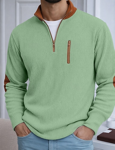 Homme T-shirt Tee-shirt Tricot Gaufre Chemise à Manches Longues Chemises pour hommes avec coudières manche longue Zip quart Automne Printemps & Automne Automne & Hiver Bloc de Couleur Mode Designer