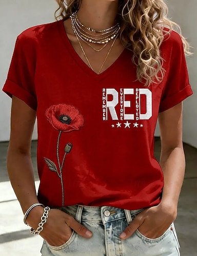 Jour de l'Indépendance Américaine Femmes T-shirt Imprimé Graphique Lettre Drapeau Américain Élégant Occasionnel Manche Courte Col en V Hauts Réguliers Occasionnel Quotidien Bleu Noir Rouge Vert Ét