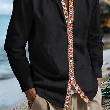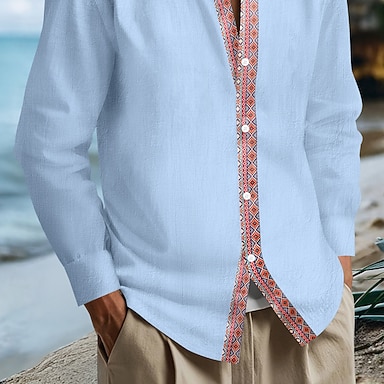 Homme Chemise Chemise en lin Chemise d'été Tenue de plage Chemise Boutonnée Chemise ethnique Couleur Unie Vacances Fête Noir Blanche bleu marine Bleu manche longue Revers Été Printemps Vêtement Tenue