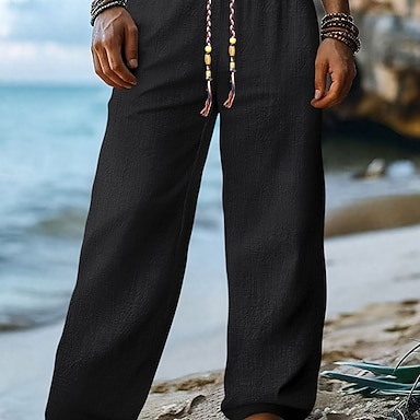Homme Pantalons en Lin Pantalons Pantalon d'été Pantalons Amples Cordon de serrage Patchwork Taille Élastique Uni Confort Respirant Longueur complète Occasionnel Quotidien Fête Mode Style Classique