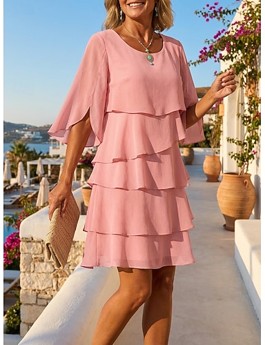 Femmes Mini Robe Robe d'invité de mariage Robe en Chiffon Robe à Volants Mode Moderne Extérieur Fête Sortir Coupe régulière Uni Demi Manches Col ras du cou Bleu Noir Rose Claire Printemps Automne