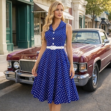 Élégant Classique Années 1950 Midi Robe Trapèze Robe trapèze Robe Évasée Sans manches À pois Ligne A Déguisement Femmes Carnaval Saint-Valentin Mascarade Vacances Tenue Quotidienne Enterrement de Vie