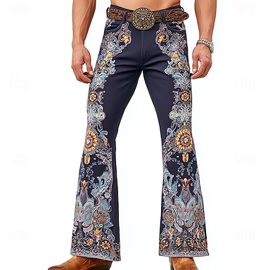 Homme Imprimé Floral Ethnique Fleurs Pantalons Pantalon Disco Pantalons pattes d'éléphant des années 60 et 70 Taille Moyenne Western Vintage Rétro Extérieur Vacances Occasionnel Poches Latérales