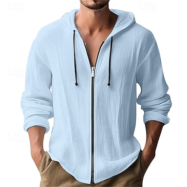 Homme Chemise Chemise d'été Chemise Décontractée Chemise de Plage Marron Sapin Noir Blanche bleu marine Bleu Ciel manche longue Uni À capuche Vacances Occasionnel Zip Up Vêtement Tenue Mode