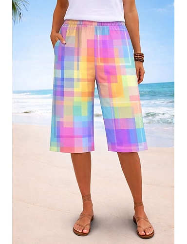 Femmes Short en coton et lin Vacances ancien style grand-mère côtier Longueur complète Taille Moyenne Fleuri Graphique Imprimé Confort Micro-Élastique Quotidien Rue Bleu Violet Jaune Violet Ét