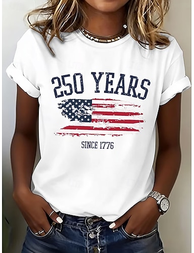 T-shirt patriotique pour femmes du Jour de l'indépendance 250e anniversaire américain graphique drapeau lettre élégant classique décontracté manches courtes col rond tops réguliers impression