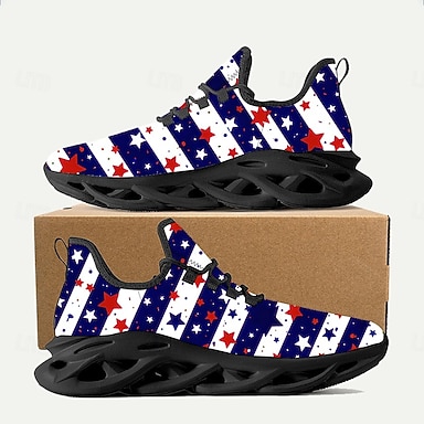 Baskets graphiques à enfiler imprimé drapeau USA pour femmes - Chaussures de sport décontractées respirantes et rembourrées style sportif patriotique pour parades USA voyage et usage quotidien