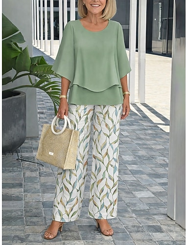Femmes Ensembles de Pantalons Manche Courte Demi Manches Papillon Col rond Fleuri Graphique Élégant Vacances Occasionnel Quotidien Noir Orange Vert Printemps & Été Coupe régulière Coupe Ample