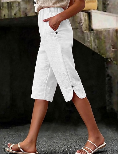 Femmes Pantalon capri Vacances Basique Longueur mollet Taille haute Confortable Non Elastique Tenue quotidienne Rouge bordeaux Gris Noir Blanche Été Printemps Coupe régulière