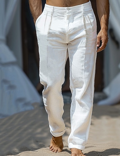 100% Lin Homme Pantalon en lin Pantalon pantalon été Poche Taille elastique Jambe droite Plein Respirable Confortable Bureau / Carrière du quotidien Vacances Classique Décontractées Noir Blanche